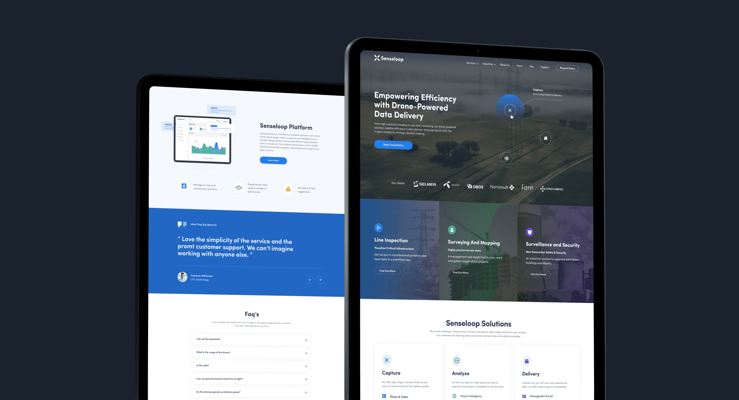 The culmination of these efforts resulted in a transformative digital presence for Senseloop. The responsive website assembled increased user engagement and reduced bounce rates, indicative of a more seamless user experience. The cohesive branding strategy contributed to heightened brand recognition, positioning Senseloop as a leader in the drone service industry. Our strategic design decisions also attracted acclaimed companies in Norway, establishing Senseloop as a preferred partner and service provider in the drone technology sector.